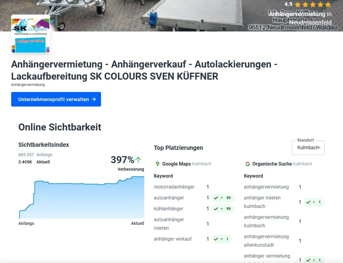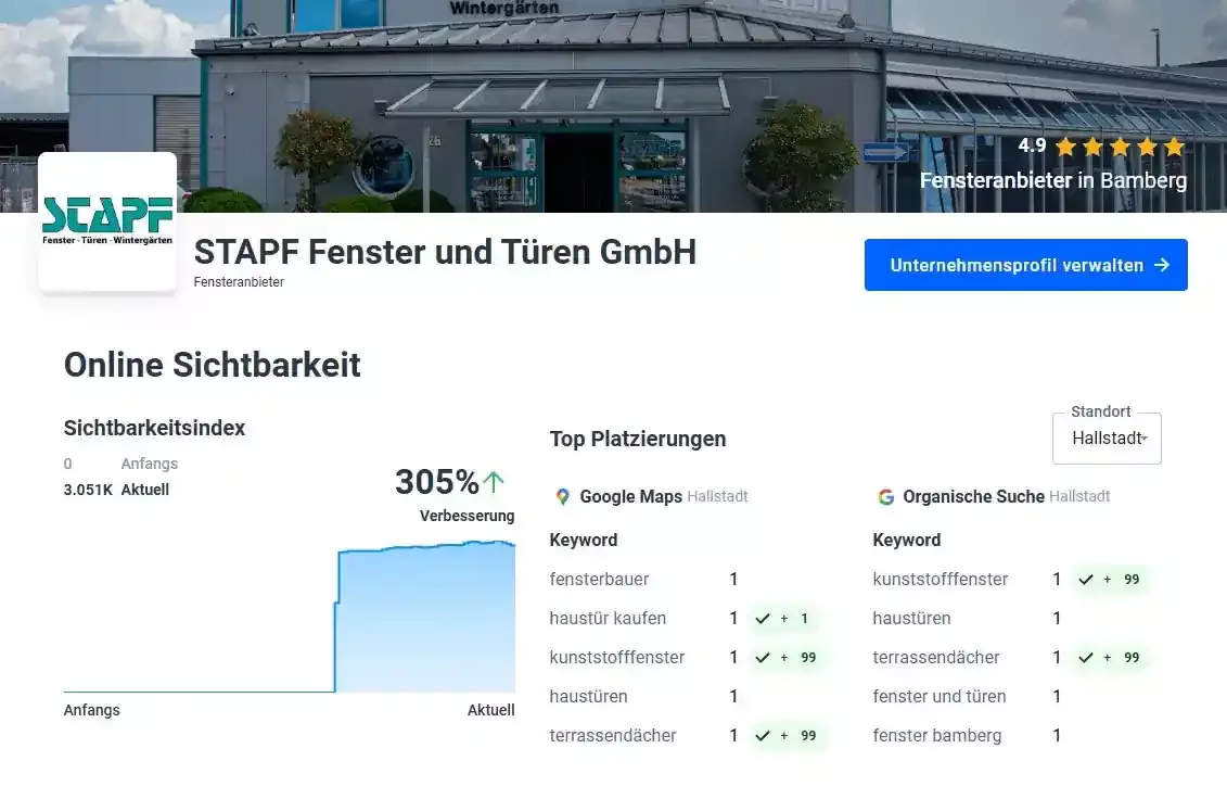 Ergänzt durch regelmäßiges Monitoring und Reputationspflege wurde eine nachhaltige Positionierung geschaffen – für mehr Sichtbarkeit, Vertrauen und Umsatz.