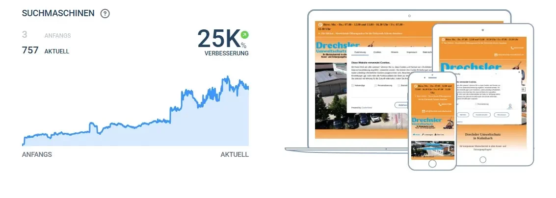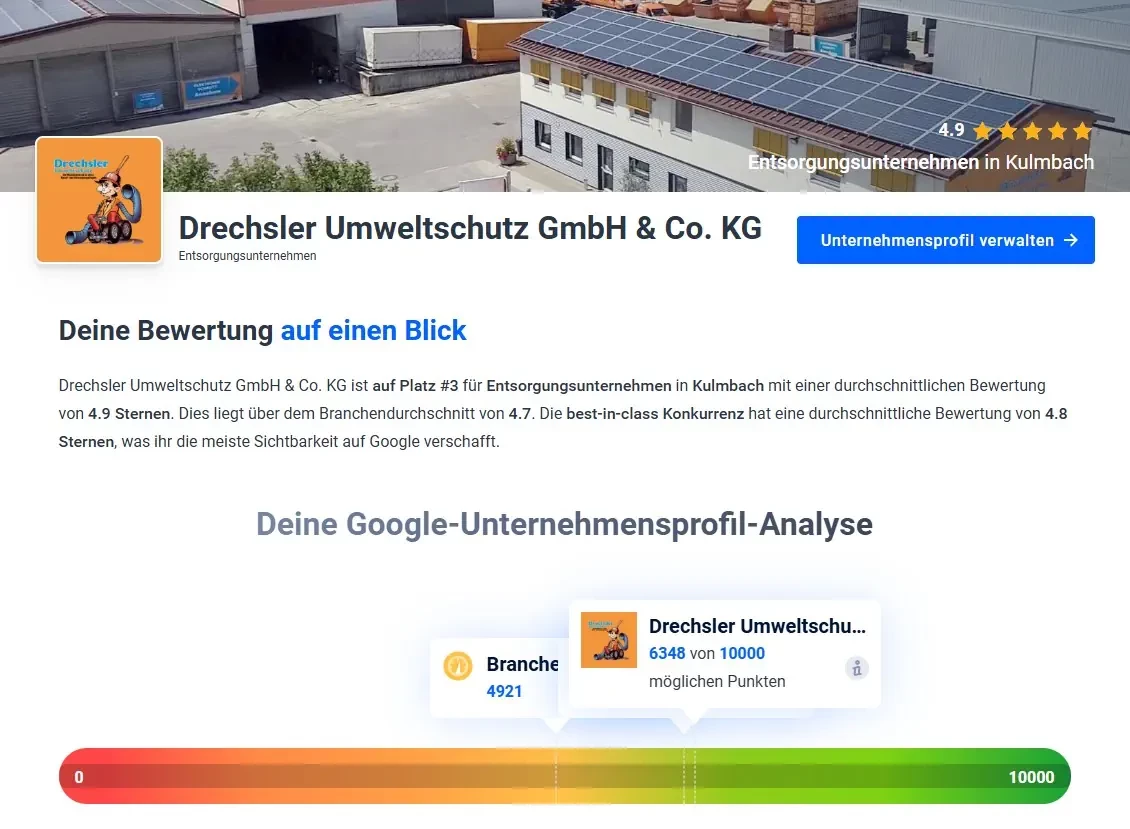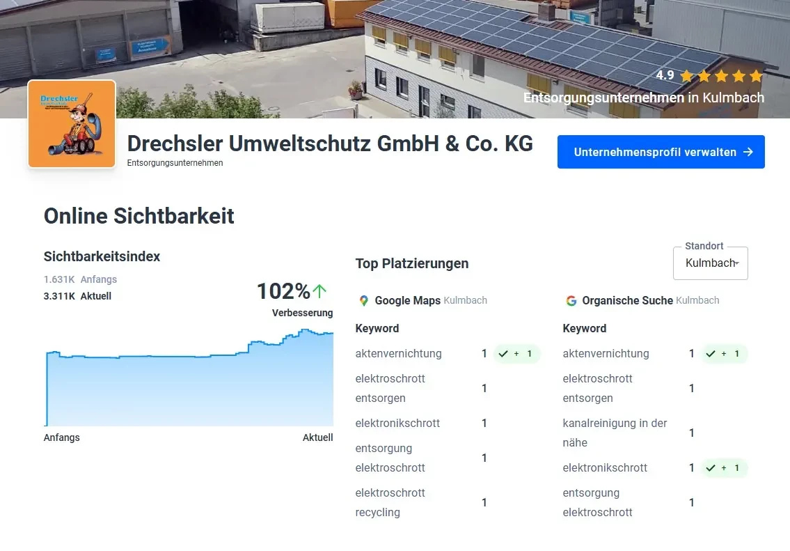 Für die Drechsler Umweltschutz GmbH & Co. KG aus Kulmbach entwickelten wir eine ganzheitliche Marketinglösung mit Fokus auf digitale Reichweite, Kundenkommunikation und regionale Auffindbarkeit.