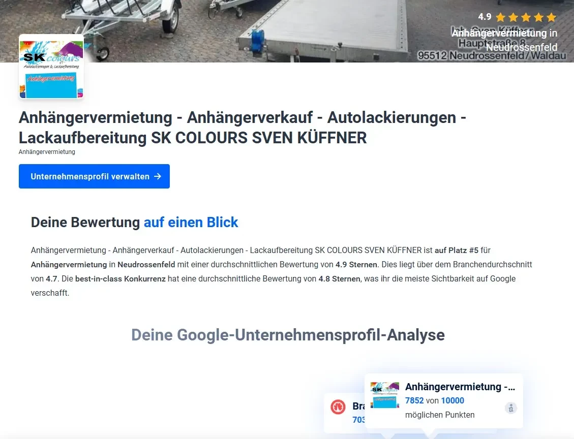 FullService-Werbung u. Marketing für SK Colours Anhängervermietung