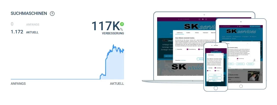 Durch gezielte SEO-Maßnahmen und lokale Verzeichniseinträge verbesserten wir die Auffindbarkeit bei Google & Co.